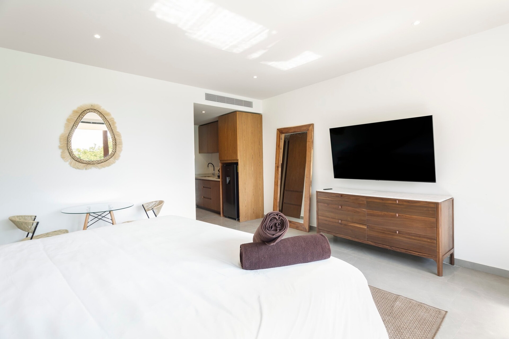 Compact yet airy, this studio was thoughtfully designed to feel both intimate and functional — an ideal choice for couples or solo adventurers seeking style, comfort, and a touch of luxury in the heart of Tulum.