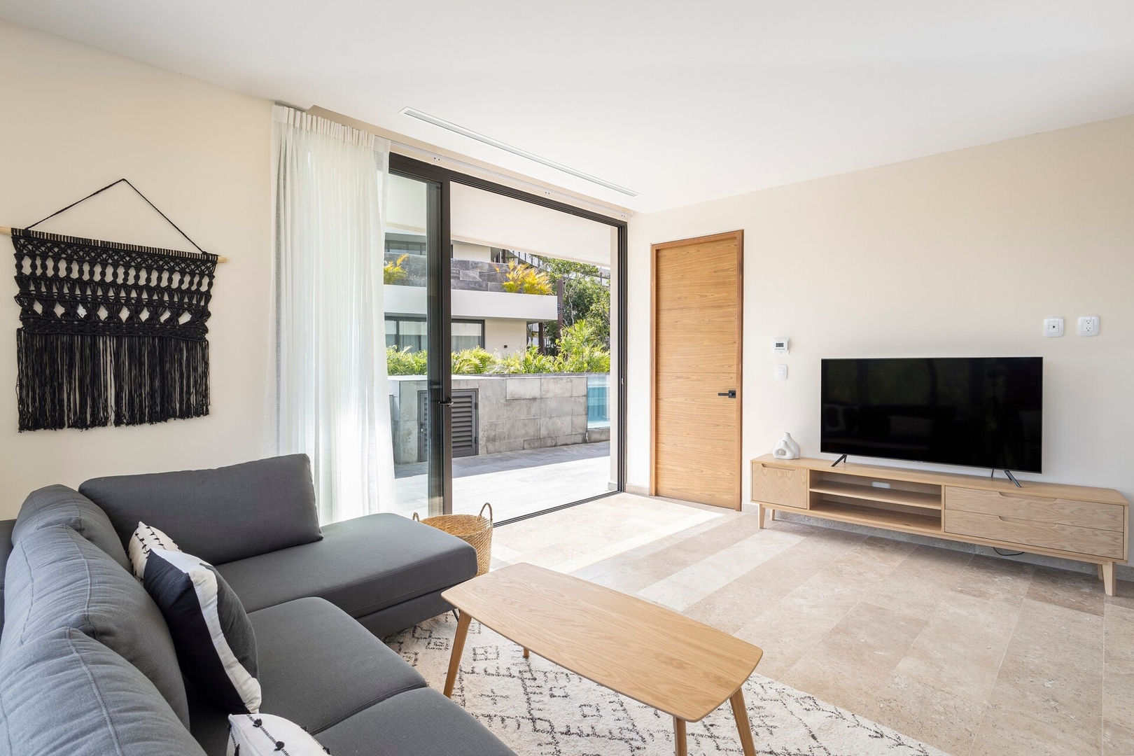 The highlight of this unit is its spectacular private terrace, featuring an exclusive pool surrounded by the lush greenery of the jungle. Here, you can immerse yourself in a peaceful oasis, listening to the sounds of nature and feeling the gentle tropical breeze. Whether sunbathing during the day or relaxing under a starry sky, this space will become your favorite retreat.