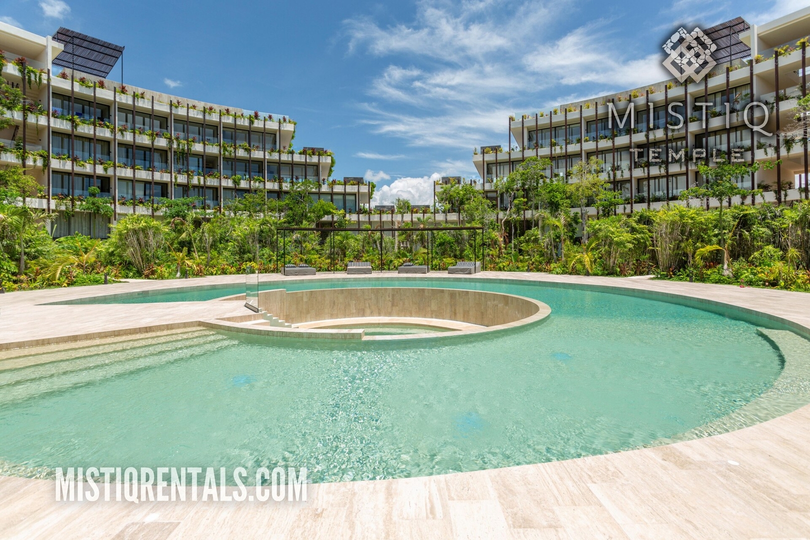 Mistiq Temple II offers everything you need for a comfortable and easygoing stay in Tulum. Enjoy a digital concierge, coworking-friendly spaces, several pools to unwind, a fully equipped gym, and a free beach shuttle — all within a modern condominium designed for travelers who value comfort, flexibility, and great ambiance. The property offers 24/7 on-site security, and the building is designed to provide a calm, private environment for guests.