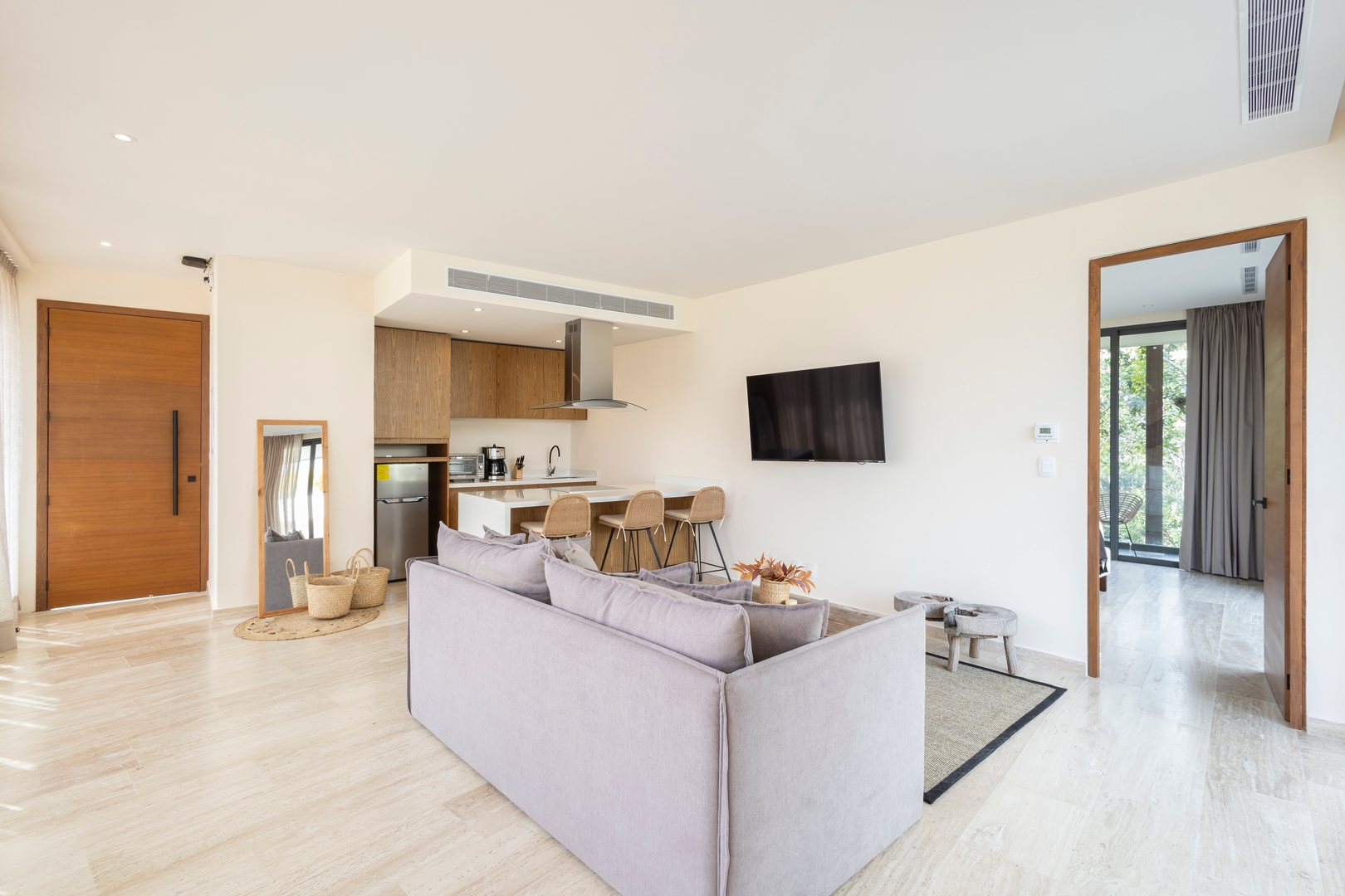 Mistiq Temple II offers everything you need for a comfortable and easygoing stay in Tulum. Enjoy a digital concierge, coworking-friendly spaces, several pools to unwind, a fully equipped gym, and a free beach shuttle — all within a modern condominium designed for travelers who value comfort, flexibility, and great ambiance. The property offers 24/7 on-site security, and the building is designed to provide a calm, private environment for guests.