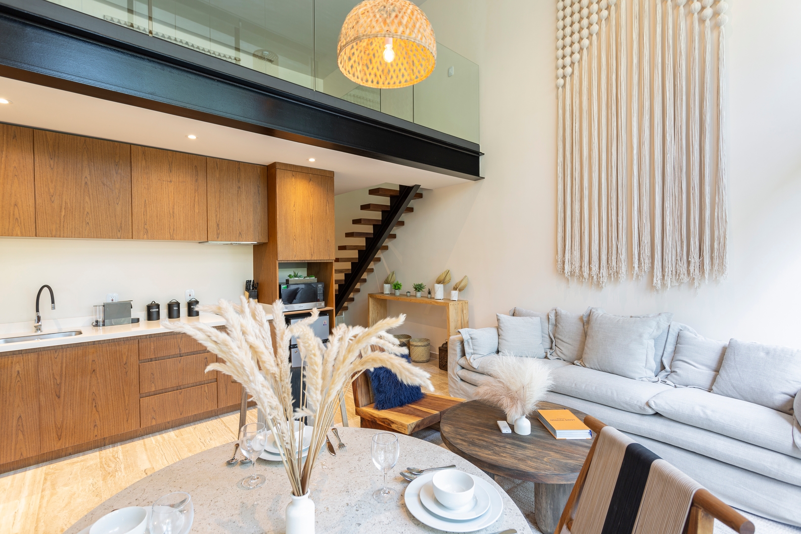 This stunning two-level loft apartment, with expansive windows and direct access to the pools, is perfectly located between Tulum’s vibrant city center and the Hotel Zone. Surrounded by lush tropical nature yet equipped with every modern amenity, it offers the perfect balance of exclusivity, comfort, and style. Abundant natural light, serene privacy, and beautiful jungle views create an inviting atmosphere, while the fine furnishings and tasteful décor ensure a fresh, luxurious, and cozy experience from the moment you arrive.